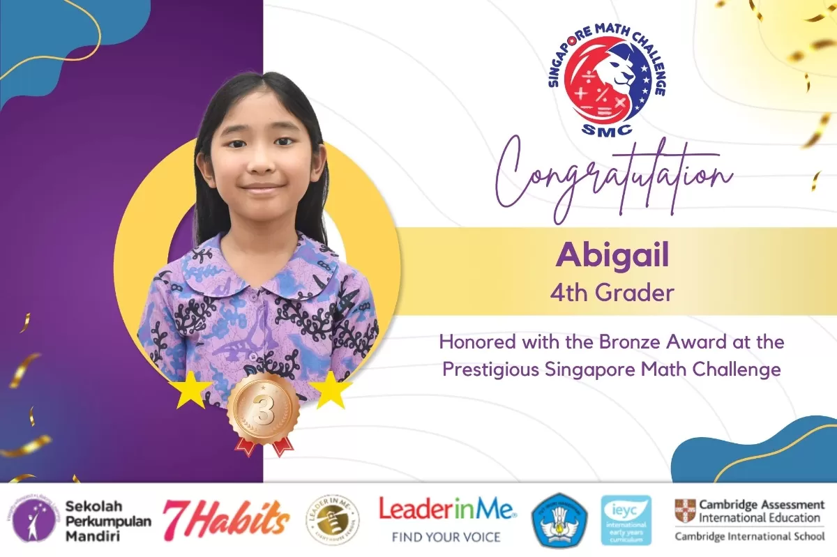 We are excited to announce the incredible achievement of Abigail, a Grade 4 student at Sekolah Perkumpulan Mandiri, who recently earned a Bronze Award in the prestigious Singapore Math Challenge!