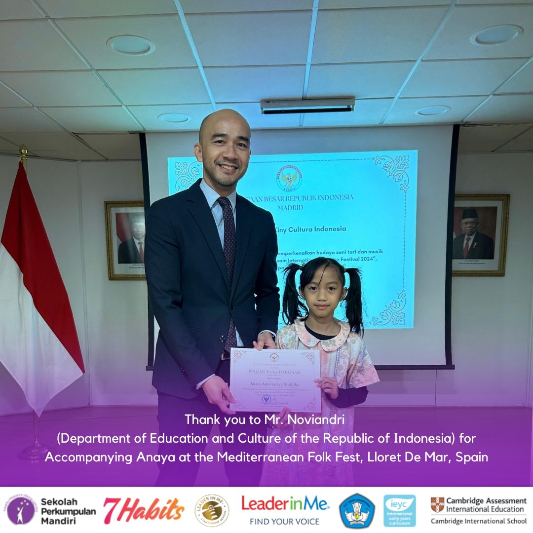 Adding to the special occasion, Anaya met Mr. Noviandri from the Department of Education and Culture of the Republic of Indonesia, who presented her with the award certificate. His presence underscored Indonesia's pride and support, celebrating Anaya’s achievement on an international stage.